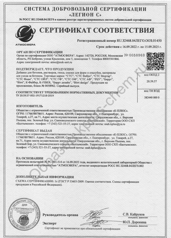 Информация по применению материалов СТС дана на основании текущих знаний и практического опыта. Перед применением материалов СТС провести лабораторные испытания на конкретных инертных и вяжущих материалах для подтверждения характеристик.